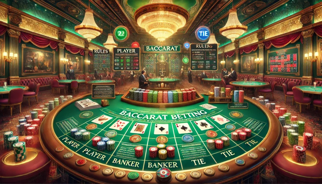 百家樂的核心在於莊家與閒家之間的點數比拼,此外還有多種投注選擇: